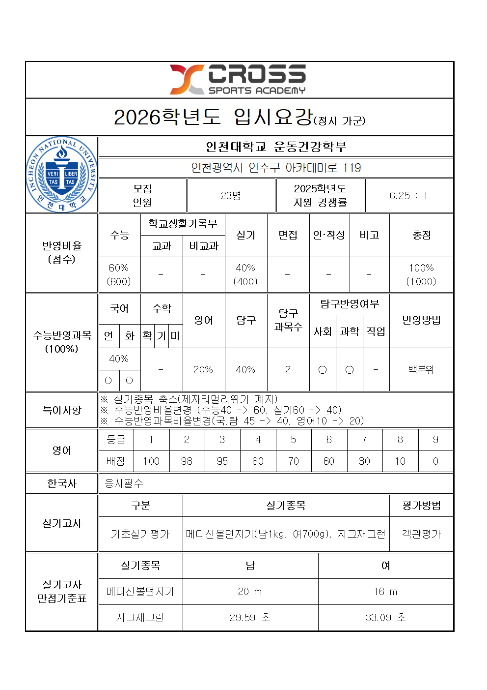 2026 인천대학교 운동건강학부 모집요강