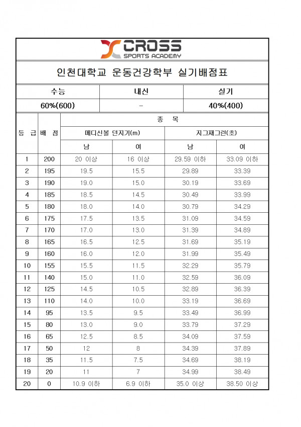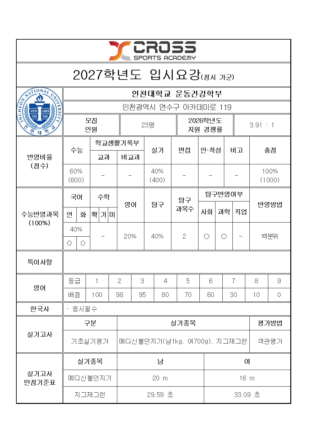 인천대학교 운동건강학부 모집요강