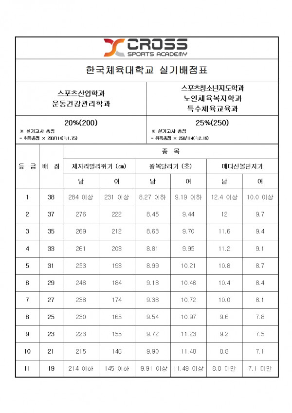 대한민국 체대입시의 표준