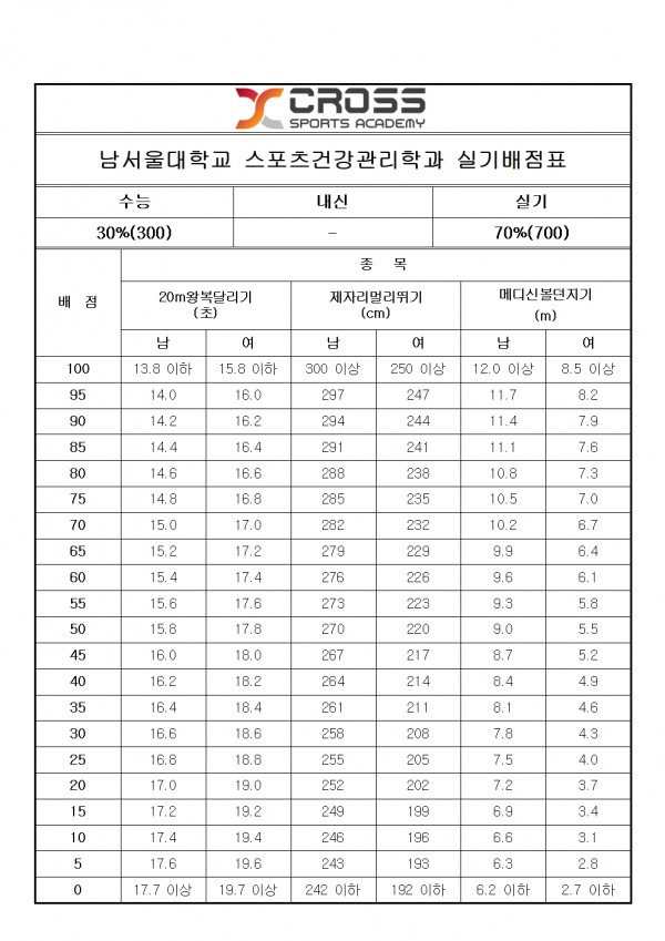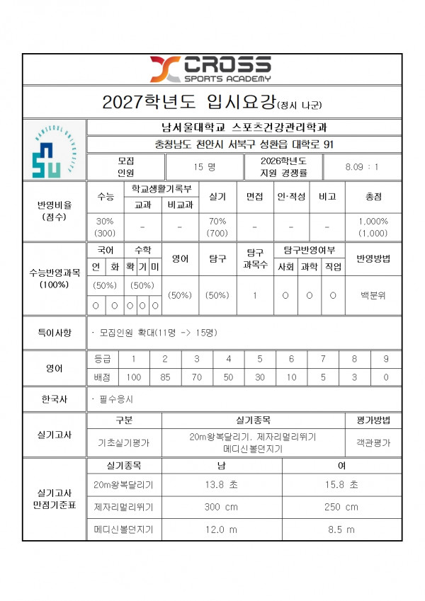 남서울대학교 스포츠건강관리학과 모집요강