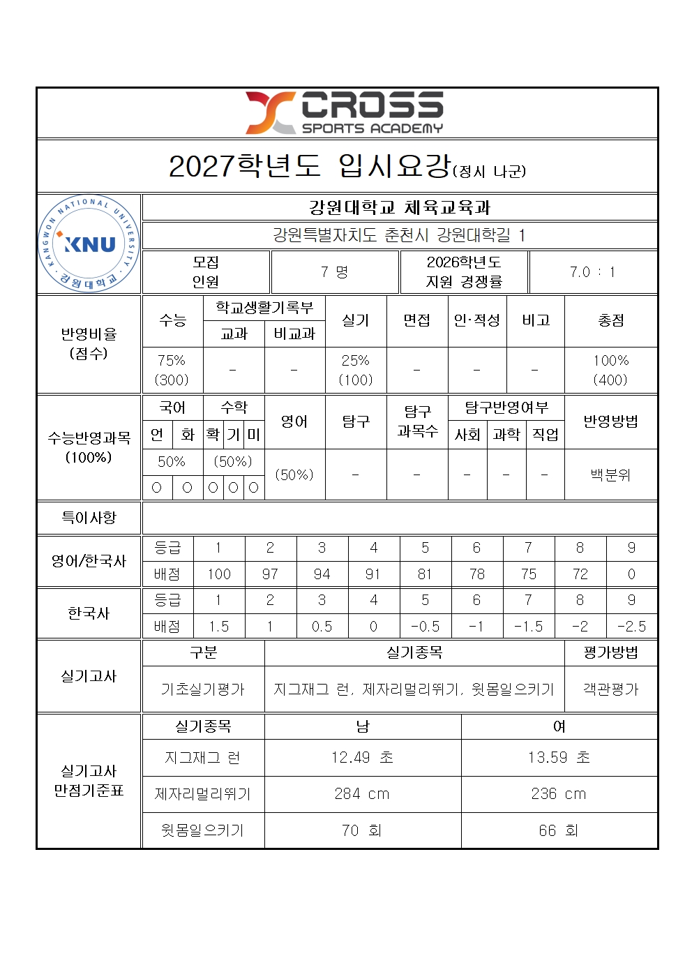 강원대학교 체육교육과 모집요강