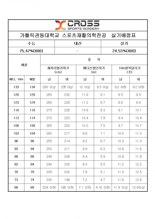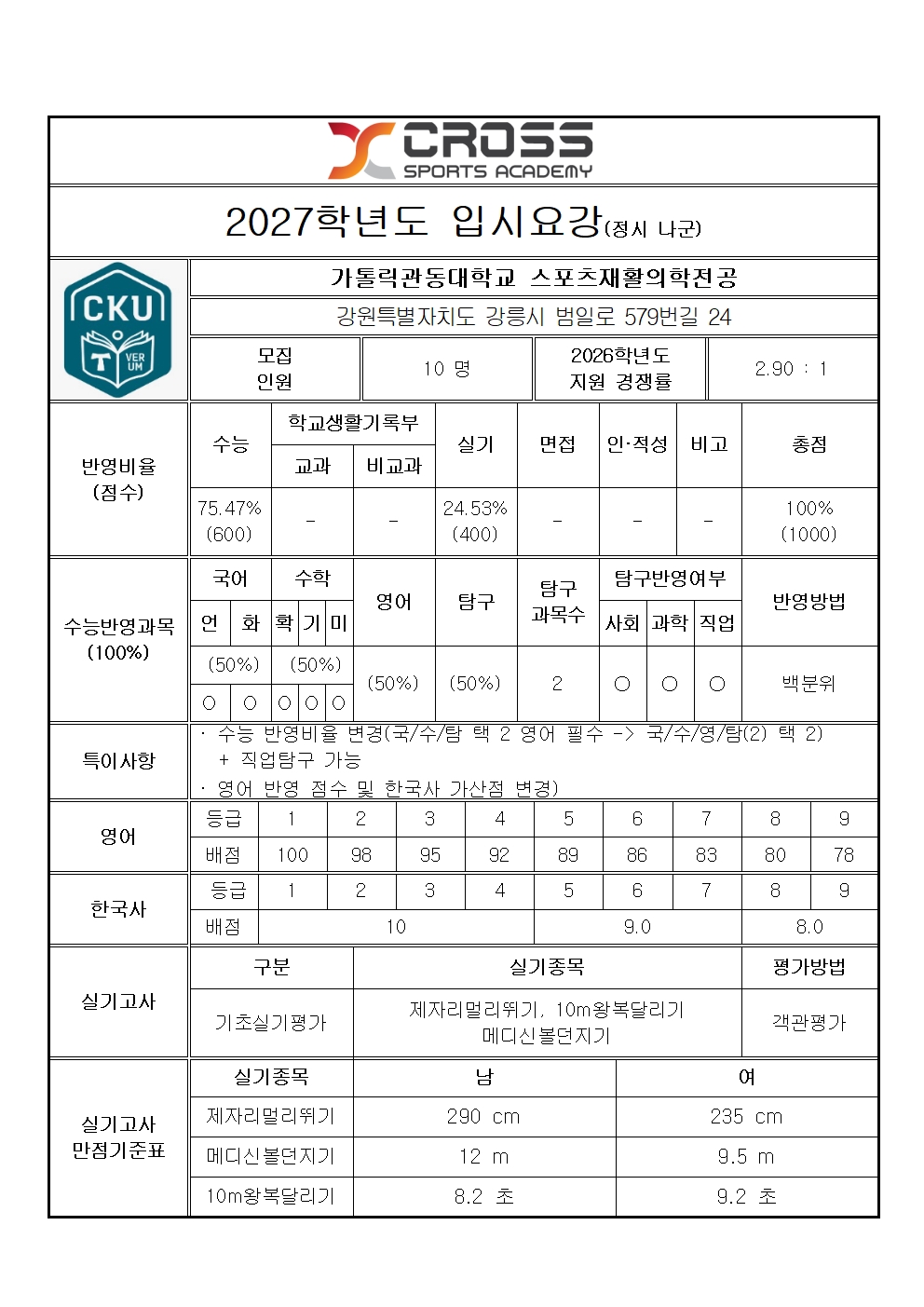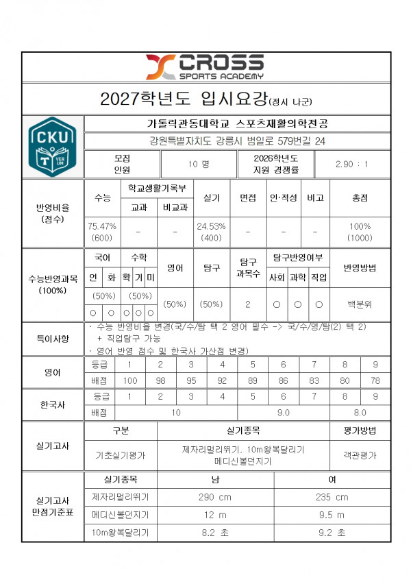 관동대학교 스포츠재활의학전공 모집요강