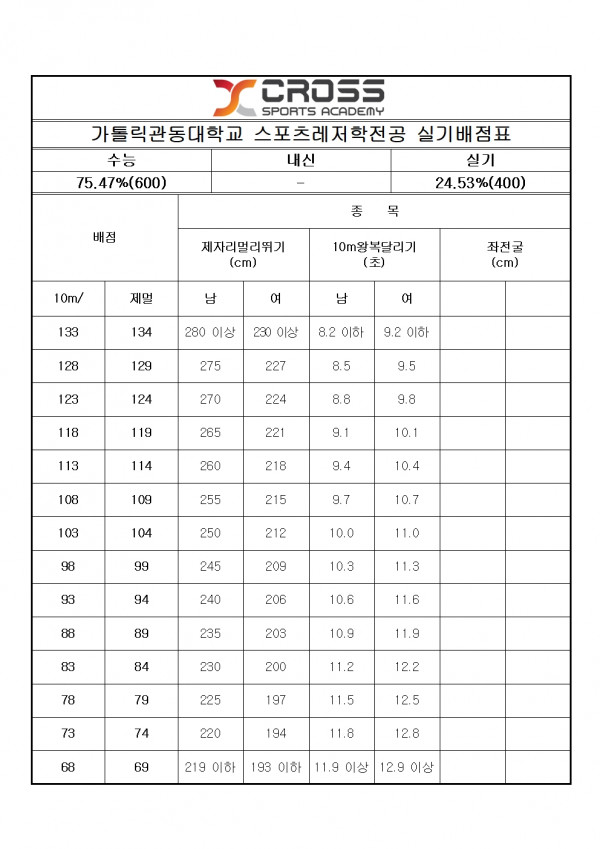 대한민국 체대입시의 표준