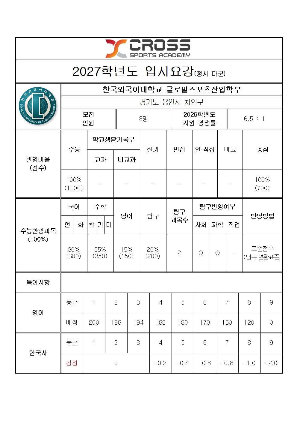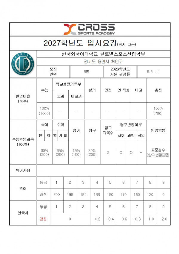 한국외대 글로벌스포츠산업학부 모집요강