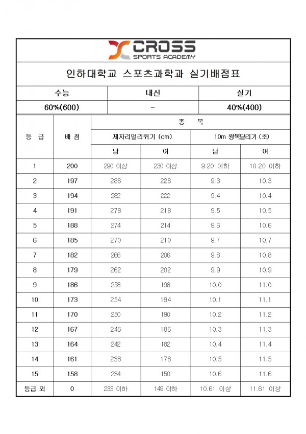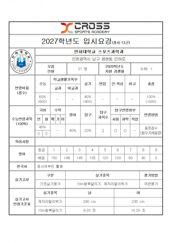 인하대학교 스포츠과학과 모집요강